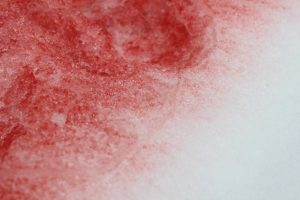 You wake up soaked in red. The sheets are slick with blood, pooled about your clammy thighs, hot. Your stomach clenches, nails scraping across your hips, palms damp.